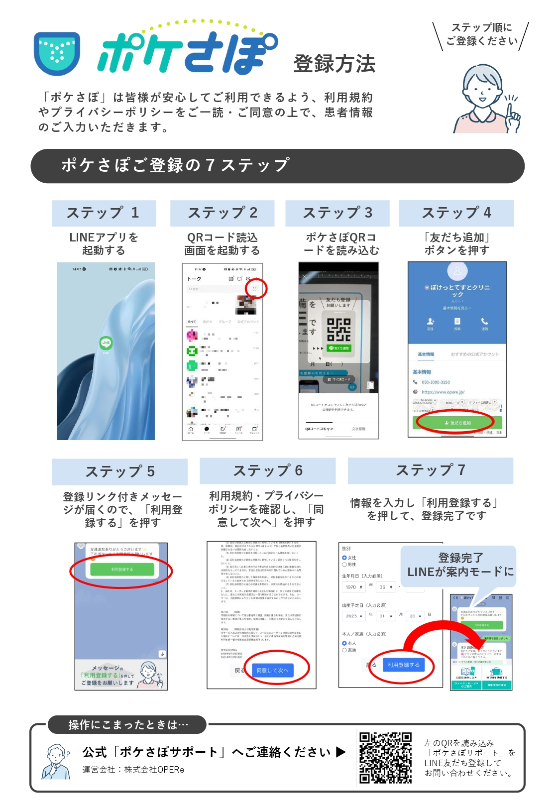 入院準備をLINEでサポートします(ポケさぽ) 「ポケさぽ」は、入院が決まった患者さんに対して、入院までの期間にLINEにて必要な情報をお知らせするシステムです。動画やメッセージを活用し、入院準備の際に必要な情報をご案内いたします。
